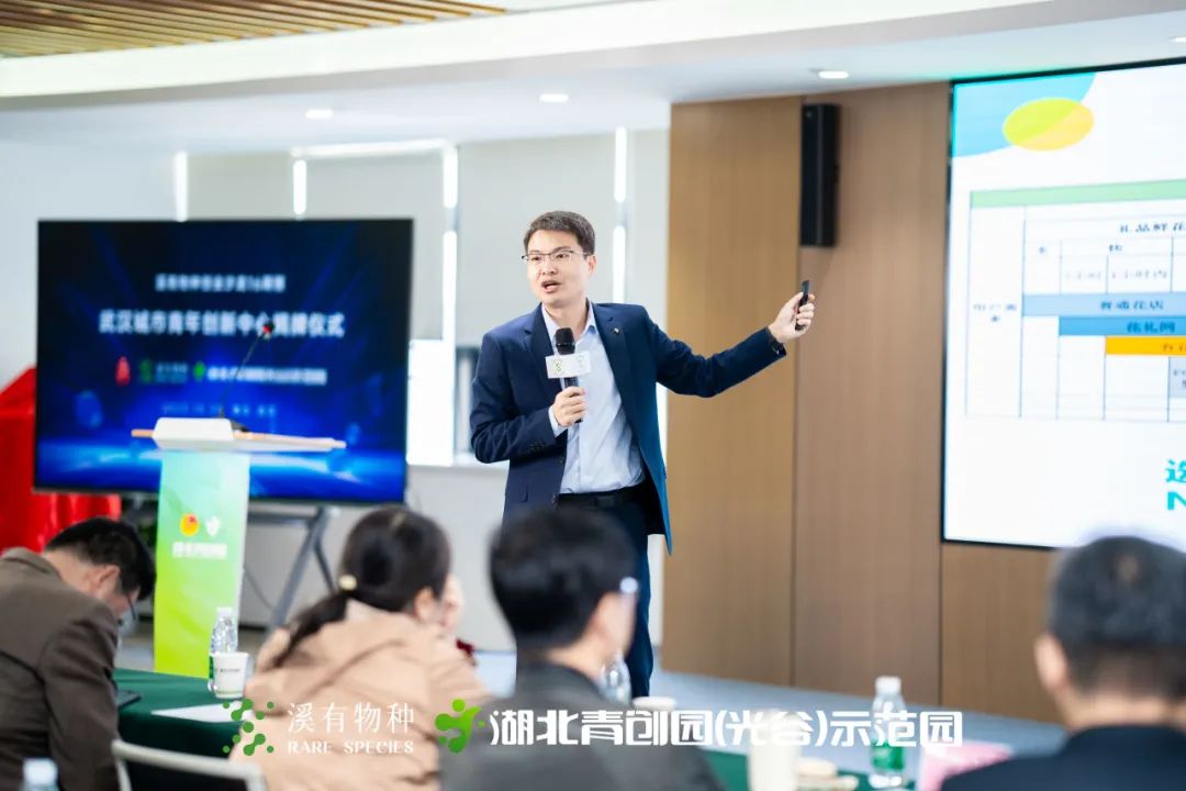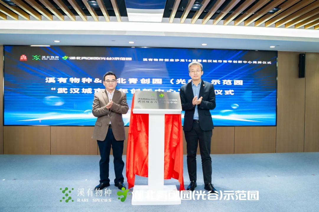 湖北青创园(光谷)示范园董事长徐杰、溪有物种创始人魏家东共同为武汉城市青年创新中心揭牌