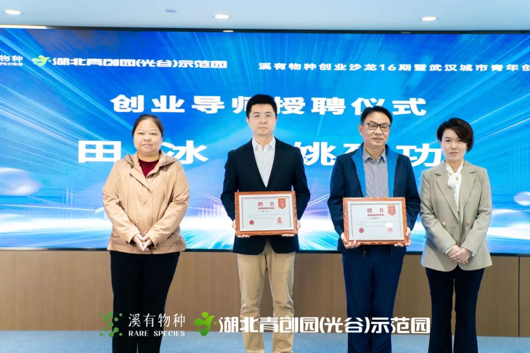 湖北省青年创业就业促进中心副主任邹欢、武汉东湖高新区科技创新和新经济发展局副局长李晶共同为创业导师颁发聘书