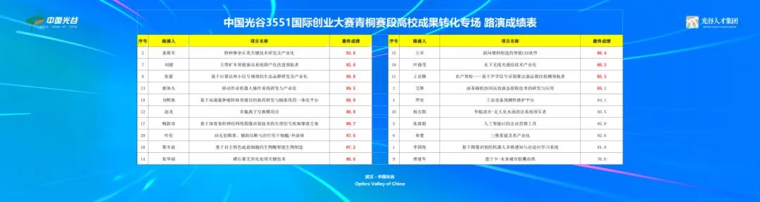 中国光谷3551国际创业大赛由武汉市委组织部、武汉东湖新技术开发区管理委员会主办的国际性创业赛事,2015年至今已成功举办8届。大赛现已成为湖北乃至全国知名的创业活动品牌,在全球创业领域具有一定影响力。2022年,为充分发挥“以赛代评”引才模式优势,东湖高新区对创业大赛进行优化。常态化接受创业者报名,定期举办路演评审对通过路演评审的创业人才(团队),提供指定范围孵化机构房租减免等支持,邀请人才项目落地光谷。