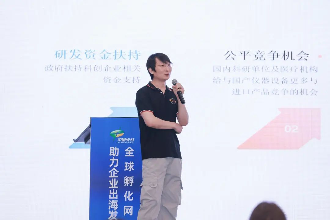 在论坛上,环岛生物技术总监王雪峰博士以《关税博弈下的中国智造-国产高精尖仪器突围进行时》为主题进行演讲,主要阐述了当前中美关税博弈下,国产高精尖科研仪器进行的高端技术突破及全球市场突围的相关情况。